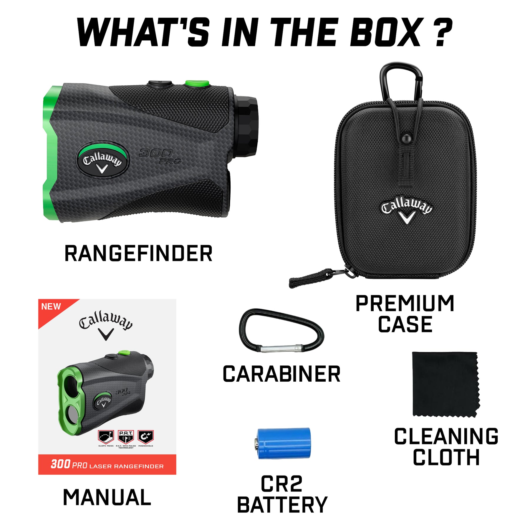 Never head off to the golf course again without the Callaway 300 Pro Golf Laser Rangefinder with Slope Measurement device! Throw away the pad and pencil to calculate all your measurements! With the click of a button, you’ll get all the distance measurement you could ever need! With its slope technology, get accurate adjusted distances to the flag. The Callaway 300 Pro measures the angle of the incline or decline you’re up against as well as calculates the slope adjusted distance displayed on the screen. Our 300 Pro Rangefinder comes with six features including slope mode, P.A.T (Pin Acquisition Technology), birdie technology, magnification, accuracy and water/fog resistance. It’s equipped with 6x magnification and 5 – 1000 yard range with +/- 1 yard accuracy. Choose whether you want to play with yards or meters to acquire distance. With our P.A.T. feature, lock up to the pin up to 300 yards away to give you an accurate distance, even if trees or other hazards are in the way. Get precise distances to the flagstick, water, trees, or bunkers. Our exclusive “Birdie” feature delivers an audible “chirp” when the laser locks in on the pin to confirm you have the correct distance. The 300 Pro Rangefinder’s slope function can be turned off with the click of a button, which makes the Callaway 300 Pro legal for tournament play. Smoke all your friends on the golf course when you bring our 300 Pro Rangefinder along! Included is the Premium Molded Case for extra protection when you’re on the go. Braving the rain or fog and getting your round of golf in anyways? Not to worry, our Callaway 300 Pro Laser Rangefinder is both water and fog resistant. Perfect for the pros that want accurate distances, while being ideal for first time golfers and helping them know which clubs they should use! Kick your golf game up a notch with just the click of a button and never second guess your distances and calculations again!